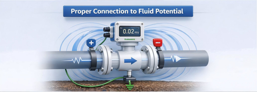 การกราวด์ของ Electromagnetic Flowmeter ไม่ใช่เรื่องเสริม แต่เป็น หัวใจสำคัญของการทำงาน เพราะมันช่วยให้: